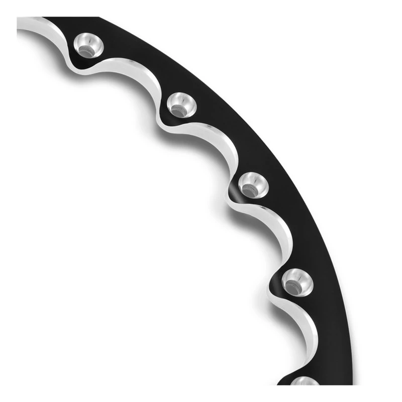 उत्पादनाची पृष्ठभाग एनोडाइज्ड कलरिंग ट्रीटमेंट (पर्यायी लाल/निळा/सोने/काळा आणि इतर स्पर्धात्मक रंग) चे समर्थन करते, जे केवळ व्हिज्युअल प्रभाव सुधारत नाही तर गंज-प्रतिरोधक संरक्षणात्मक थर देखील बनवते आणि सेवा जीवन वाढवते. त्याची अभिनव लॉकिंग स्ट्रक्चर टायर ओठ घट्टपणे निराकरण करू शकते, टायर ओठांचे विस्थापन प्रभावीपणे प्रतिबंधित करू शकते किंवा उच्च सेंट्रीफ्यूगल फोर्सच्या परिस्थितीत डिटॅंगलिंगला प्रभावीपणे प्रतिबंधित करते आणि वाकणे स्थिरता आणि सुरक्षिततेमध्ये लक्षणीय सुधारणा करू शकते.